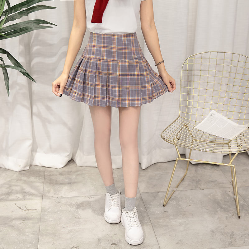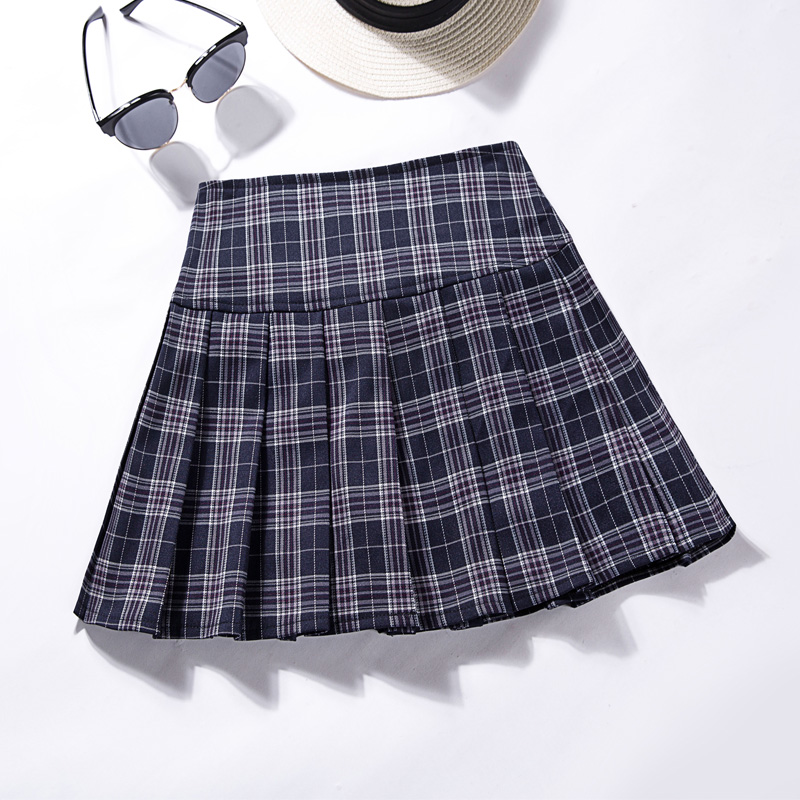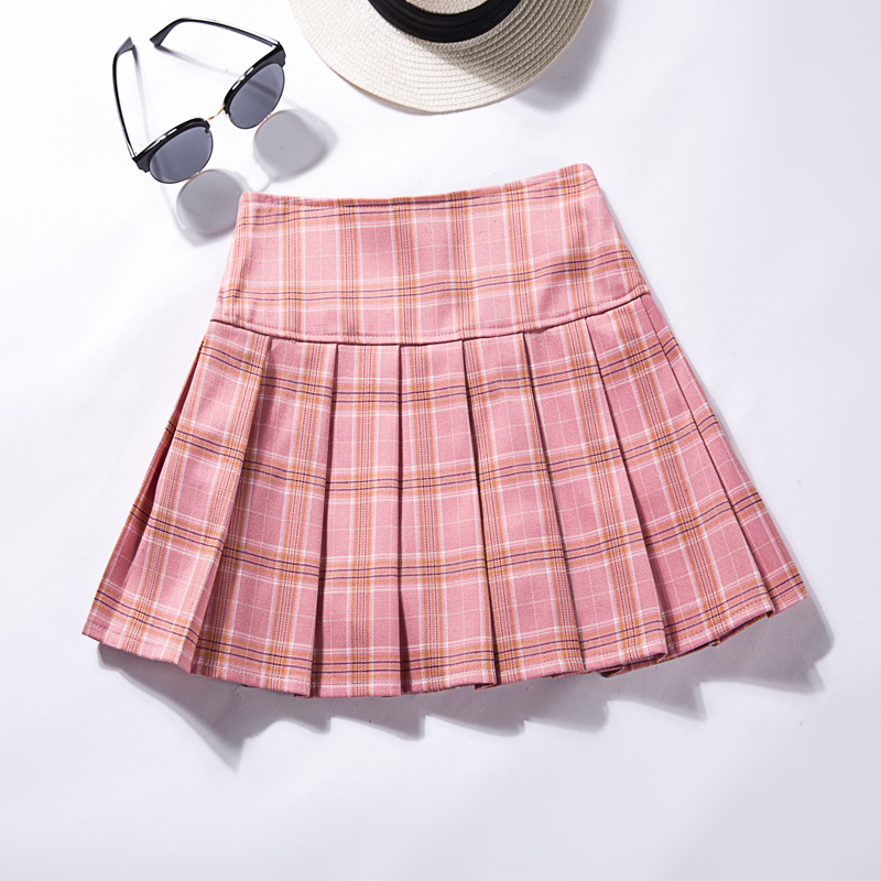 / 春季格子百褶裙短裙女夏季學生松緊腰百搭褲裙韓版a字裙半身裙子